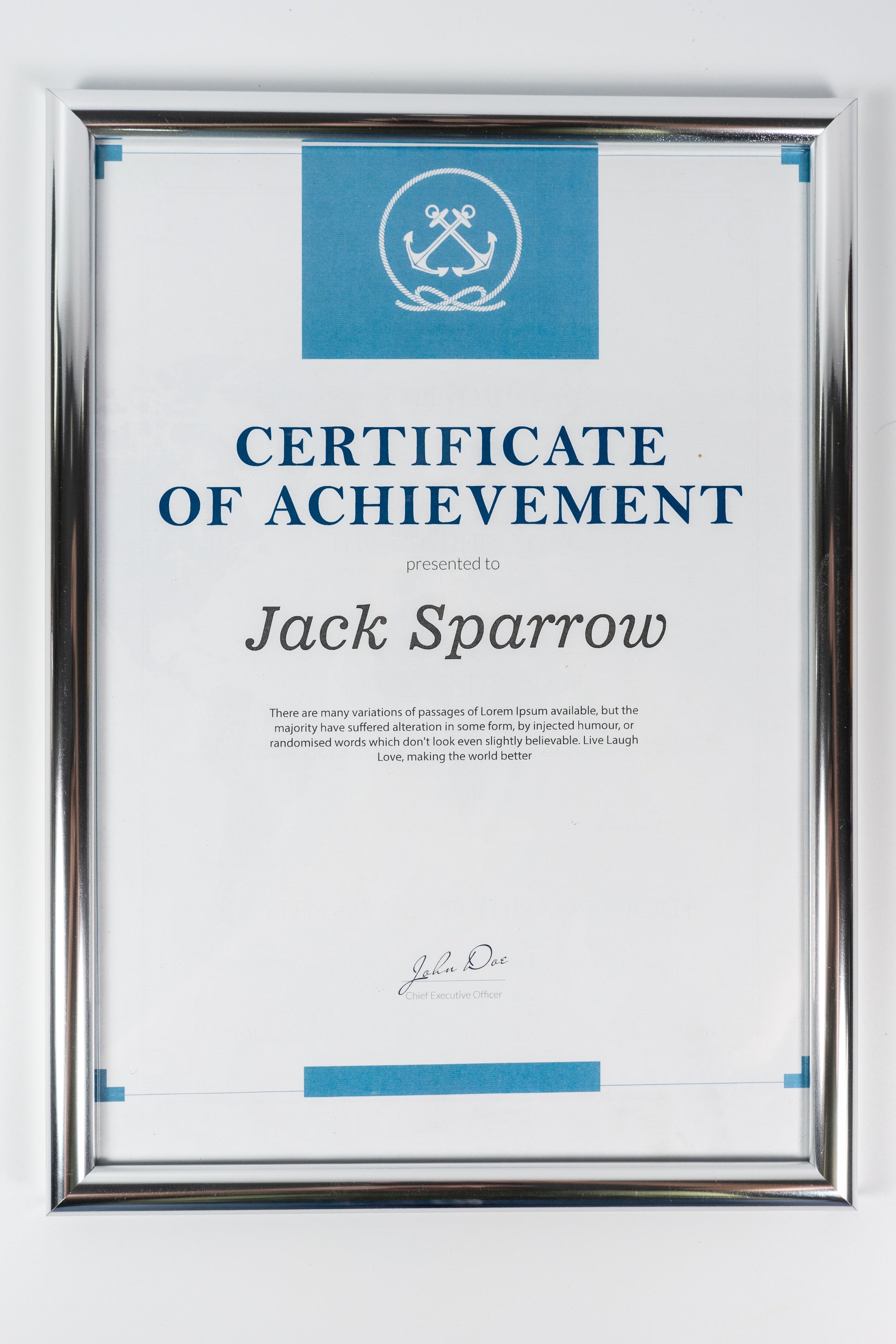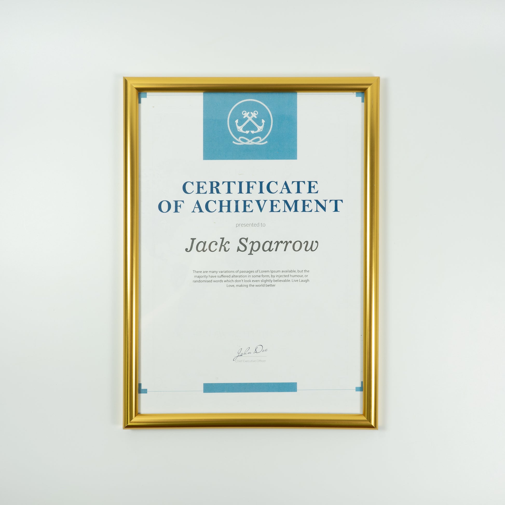 Elevate your home or office decor with our gold and silver Certificate Frame, featuring a versatile design that can be hung on the wall or displayed on a table with the included stand. Showcase your accomplishments in style.